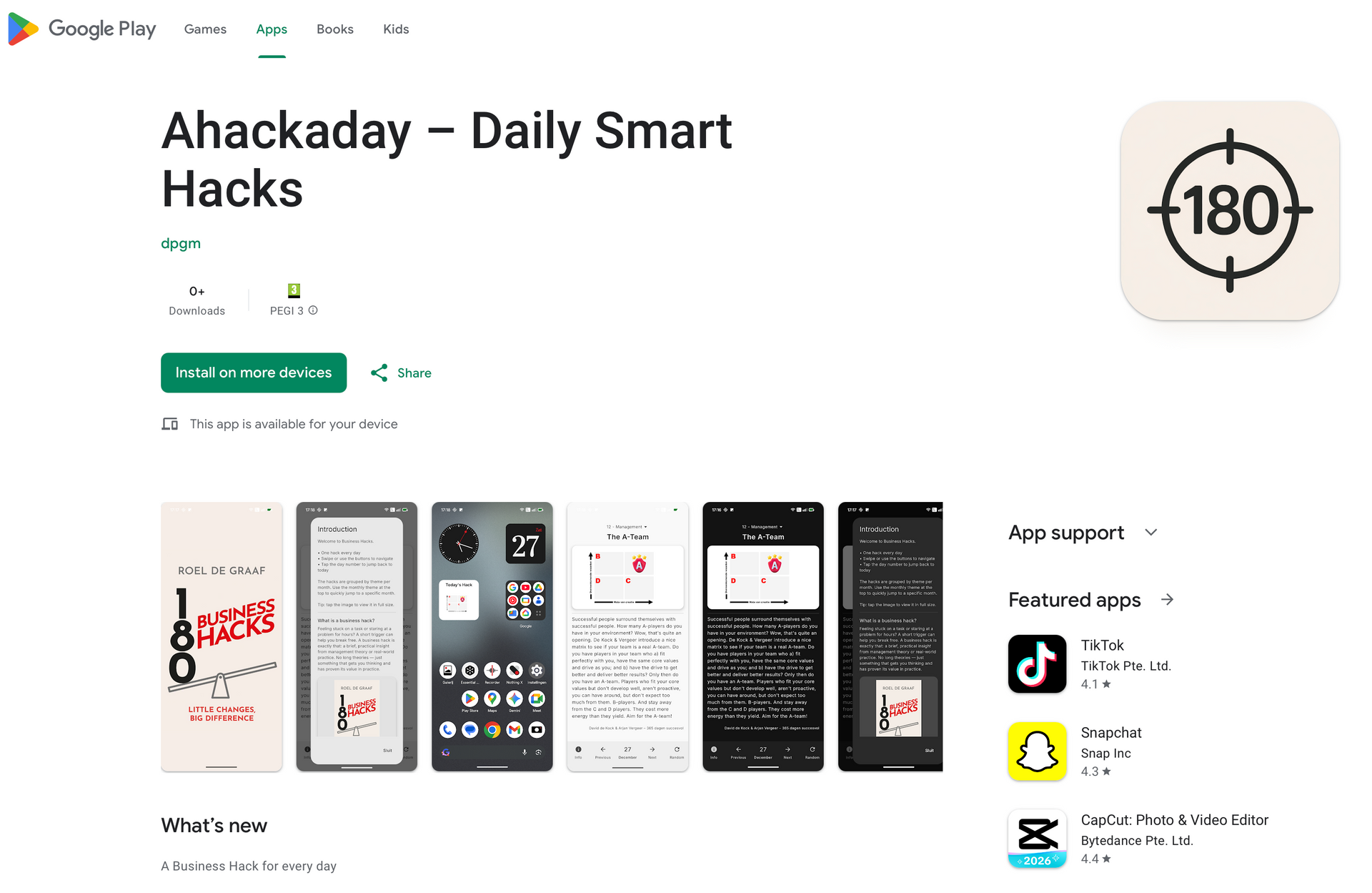 Yes, in the Apple app store you will find the app 'Ahackaday' that gives you a daily business hack to inspire you for the day. It comes with a handy widget that you can place on your home screen.